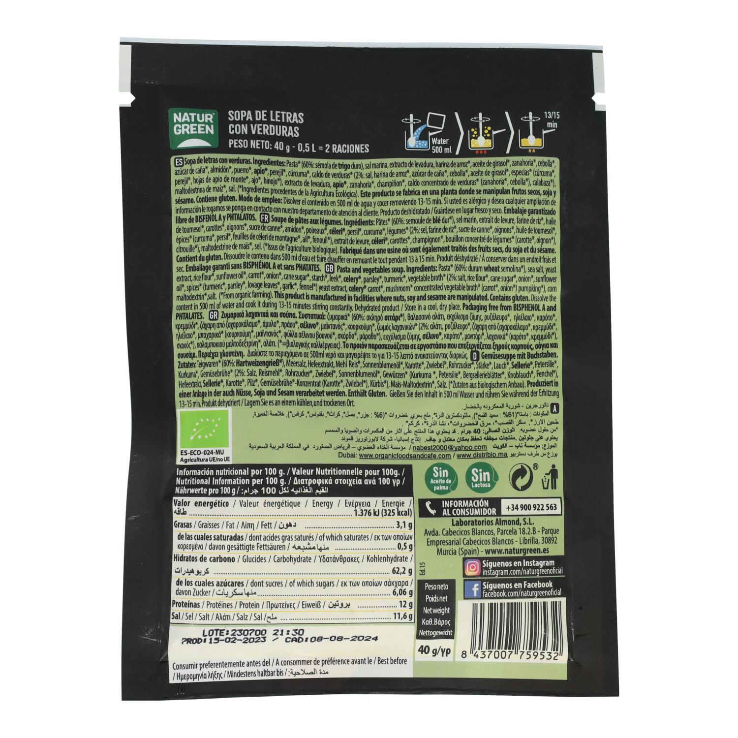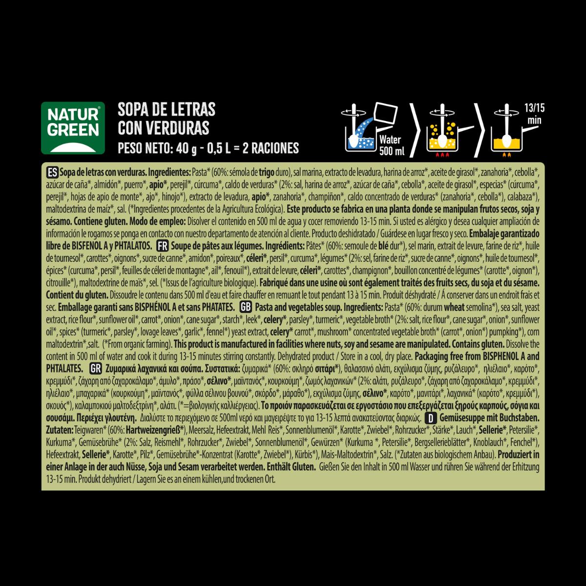 Toda la información sobre "Sopa Letras con verdura bio Naturgreen, 40g"