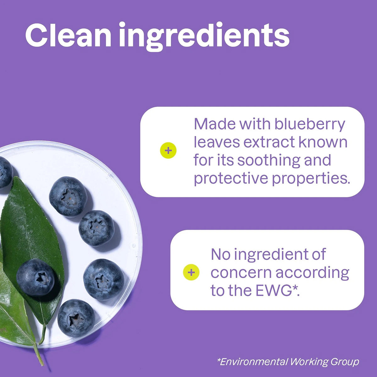 - Formulado con un 99,6 % de ingredientes de origen natural*, incluido extracto de hojas de arándano con propiedades protectoras