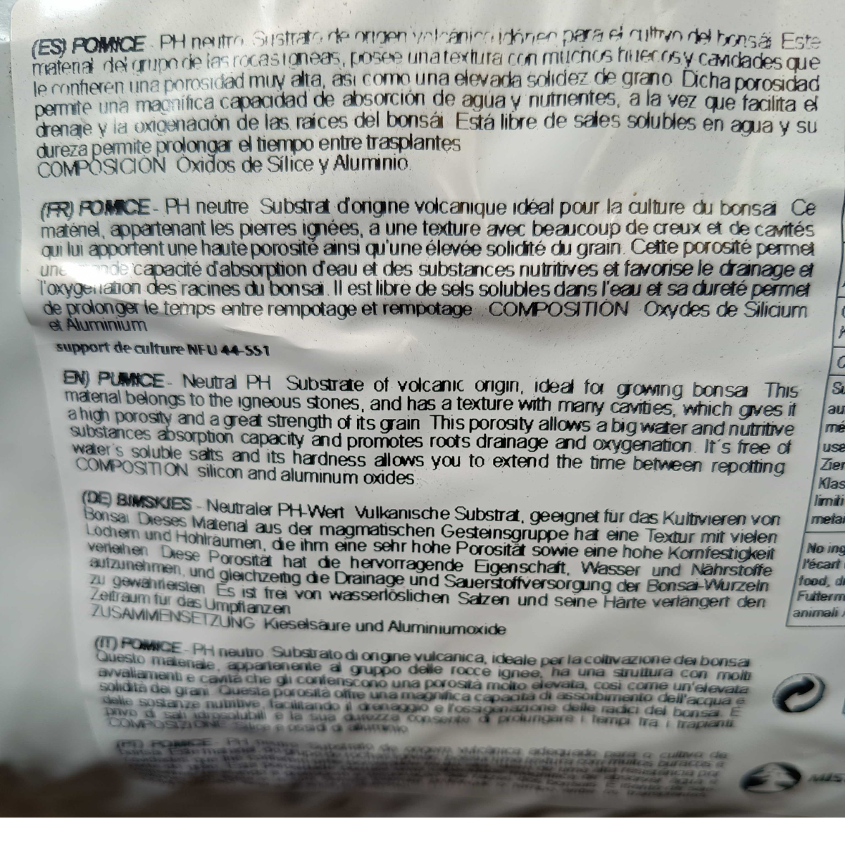 Toda la información sobre "Sustrato Bonsái Pomice grano pequeño 3 - 8 mm, 20 L"