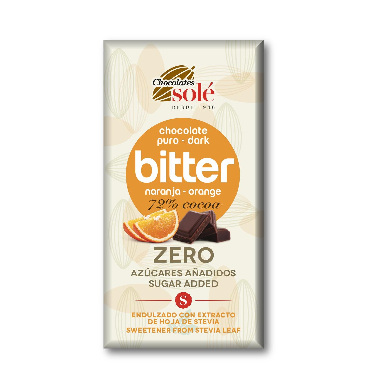 Tableta de chocolate 72% Stevia naranja Bitter 100g Solé
