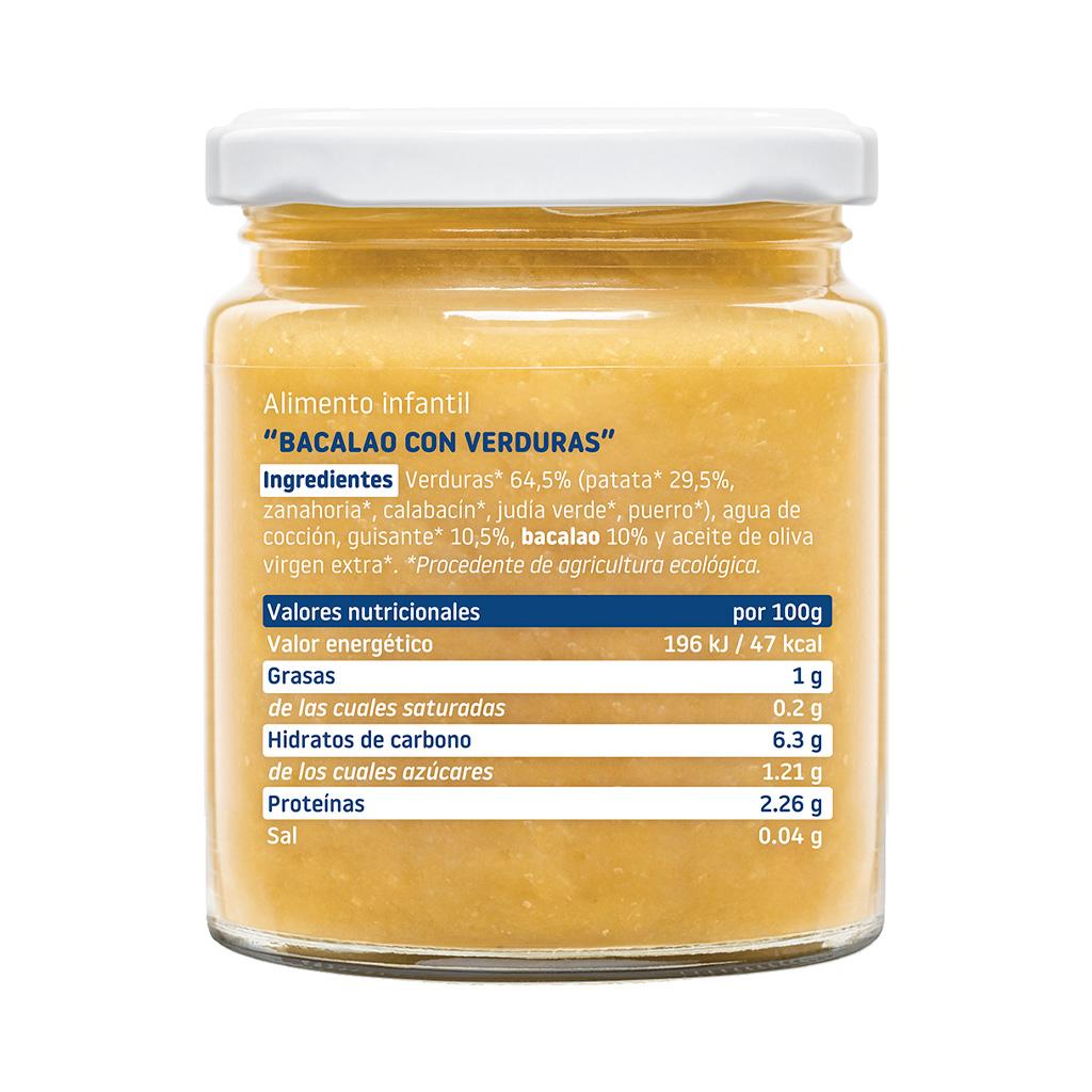 Tarrito BIO de verduras ecológicas con bacalao 230g.