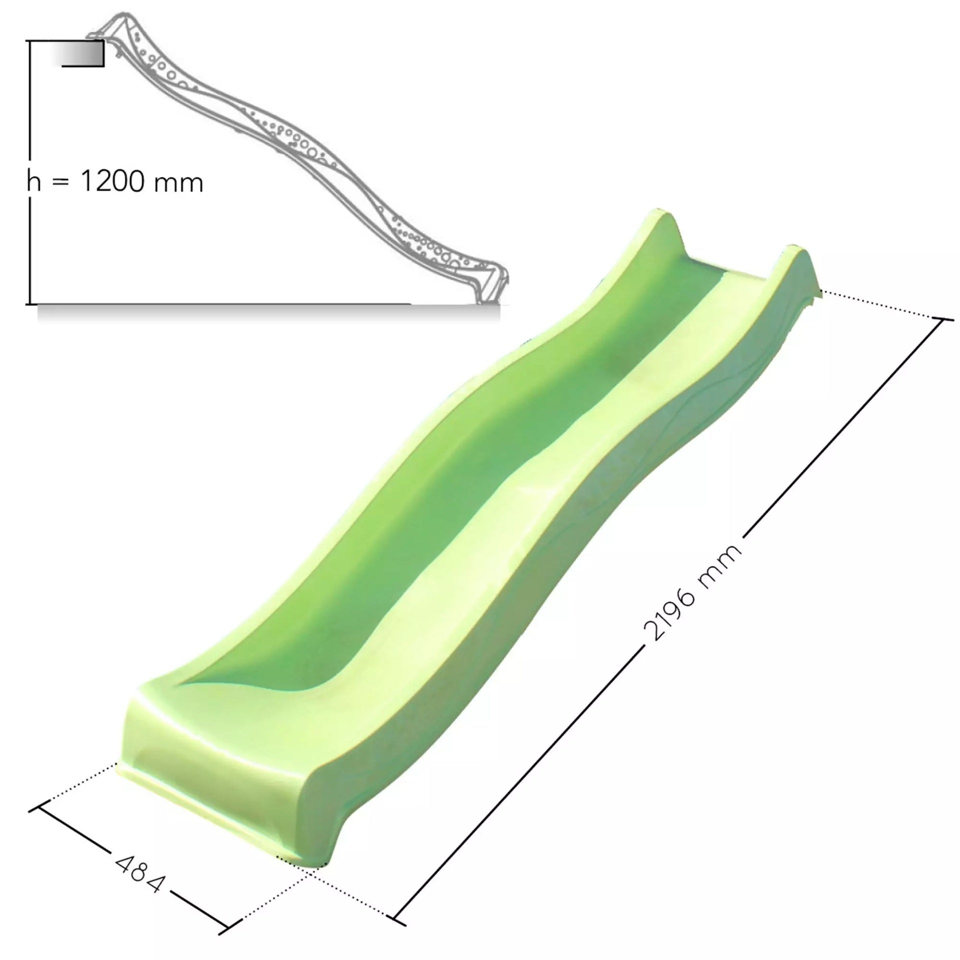 Este tobogán tiene una longitud de 2,20 m y se monta sobre una plataforma SOULET de 1,20 m de altura . Sólo puede acomodar a un niño a la vez y soportar una carga máxima de 50 kg . Está destinado a niños de 3 a 12 años . Está fabricado en plástico y por tanto es muy resistente a las inclemencias del tiempo.