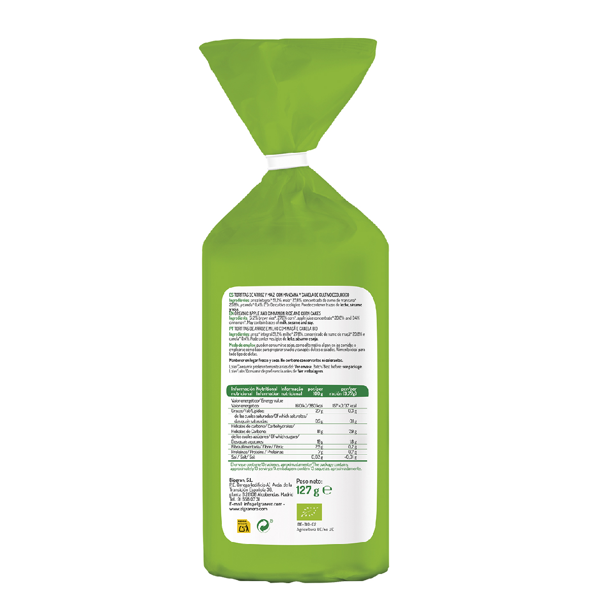 Toda la información sobre "Tortitas de Arroz y Maíz con Manzana y Canela El Granero, 127g"