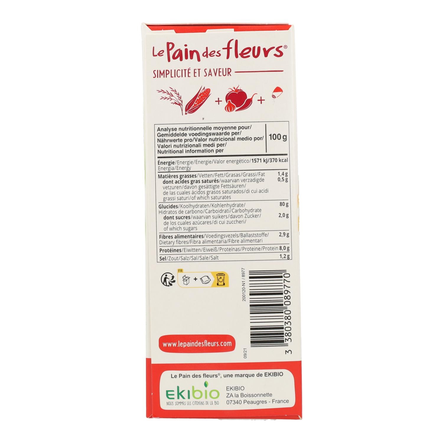 Toda la información sobre "Tostadas Crujientes Crackers de Tomate y Paprika para Aperitivo sin gluten BIO Le Pain de Fleurs 150 g"