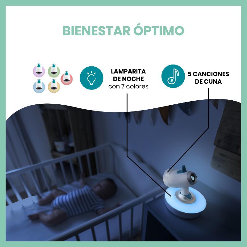 El YOO Moov incluye una lámpara de noche multicolor, canciones de cuna, un sensor de temperatura, escucha bebes, función walkie-talkie y modo VOX. Este vigilabebés de vídeo tiene un alcance de 300 m. Gran seguridad para ti y tu bebe.