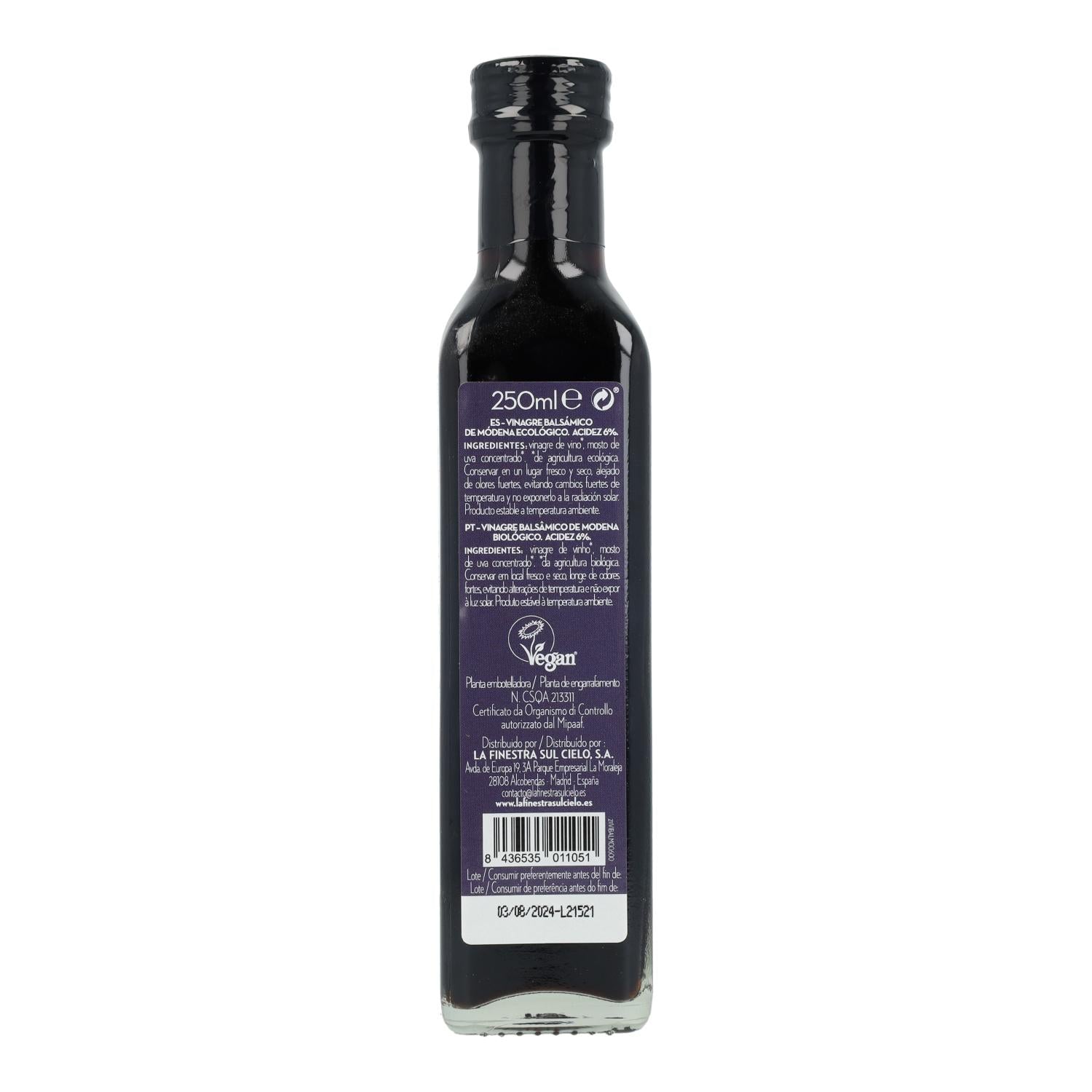 Toda la información sobre "Vinagre Balsámico de Módena La Finestra Sul Cielo 250 ml"