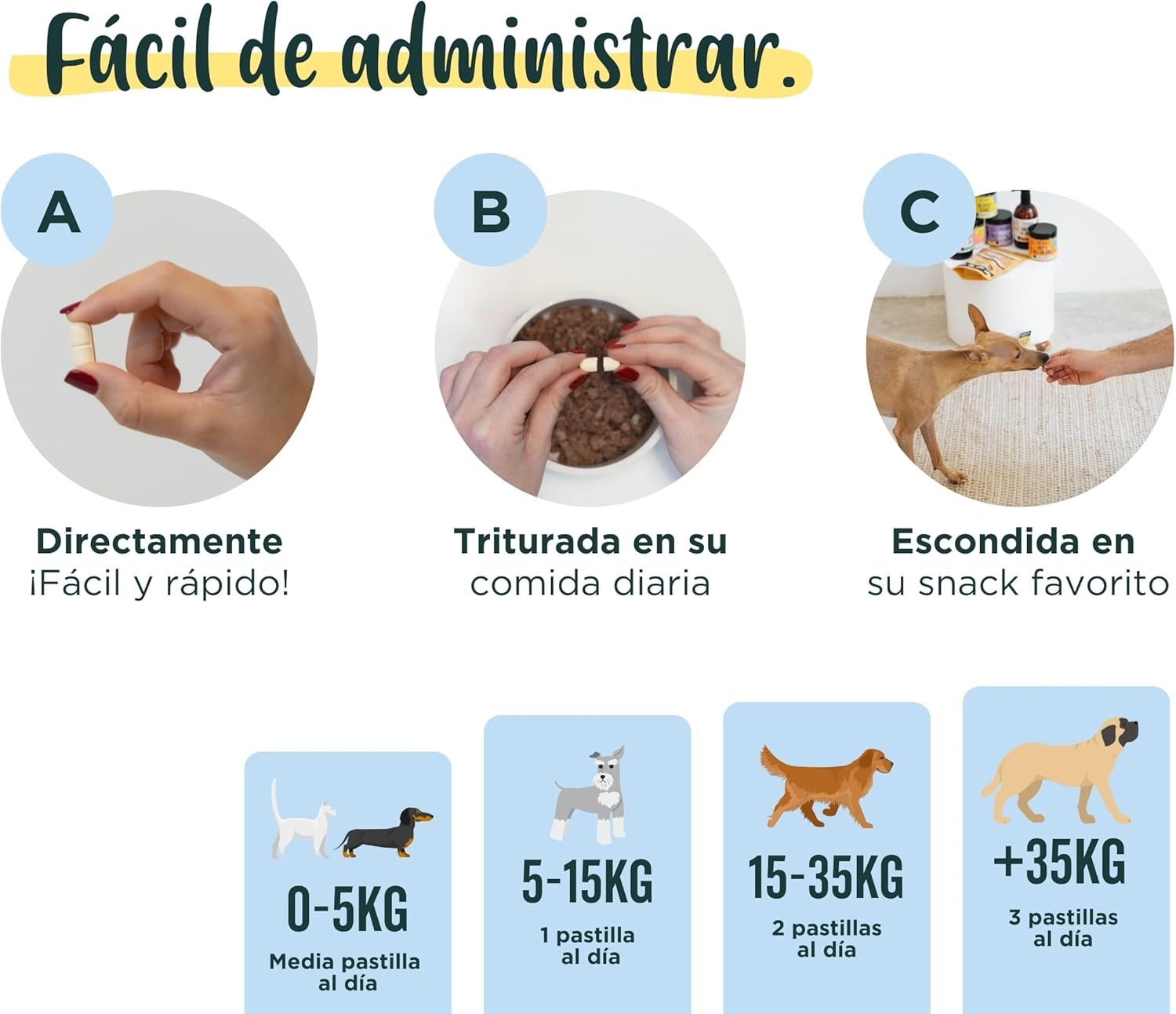 - ❤️ SABOR IRRESISTIBLE: Con un delicioso sabor a hígado, estos comprimidos son fáciles de administrar. Para las mascotas más exigentes, puedes triturarlos fácilmente con dos cucharitas y mezclarlos con su comida. ¡Rápido y sin complicaciones!